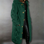Der Karina Elegante Gemütliche Mantel hüllt Sie in Wärme, Textur und zeitlosen Stil. Hergestellt aus einem weichen, atmungsaktiven Strickmix, verfügt er über ein übergroßes Kabelstrickdesign, das sowohl Komfort als auch Charakter verleiht. Die bodenlange Silhouette bietet sanfte Bauchdeckung und einen anmutigen Fall, während die Seitentaschen praktische Eleganz bieten. Ob Sie für einen entspannten Spaziergang ausgehen oder Freunde treffen, Karina hält Sie stilvoll, gemütlich und mühelos raffiniert.
