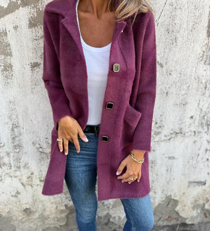 Florentine - Lässiger, einreihiger dicker Mantel mit Revers