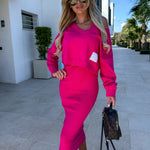 Spüren Sie Ihre innere Eleganz mit einem modischen Midikleid, das perfekt zu einem schicken Sweatshirt passt. Dieses Set betont nicht nur Ihre natürliche Figur, sondern sorgt auch dafür, dass Sie sich in jeder Situation wohl fühlen. Fühlen Sie sich selbstbewusst und stilvoll, wo immer Sie sind.