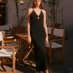 • Langes, figurbetontes Kleid, Maxi-Ausschnitt hinten