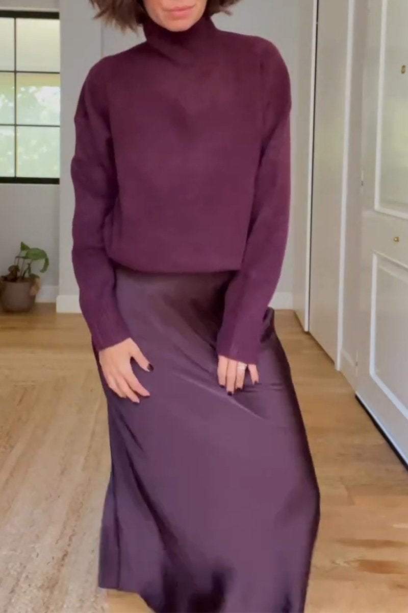 Elegantes Design – Der Rock und das langärmelige Oberteil bieten eine harmonische Kombination für einen stilvollen Look.