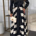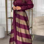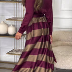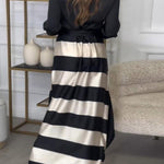 Unser Bestseller, das SURI - Elegante Gestreifte Kleid, wurde entwickelt, um Ihnen zu helfen, Selbstvertrauen und Eleganz zu versprühen, wohin Sie auch gehen. Der luxuriöse Stoff und die auffälligen Streifen sorgen dafür, dass Sie auffallen, während die schmeichelhafte Silhouette den ganzen Tag über Komfort und Raffinesse bietet. Egal, ob Sie zu einer Tagesveranstaltung oder einem Abendausgang gehen, dieses Kleid ist die perfekte Ergänzung für Ihre Sammlung.