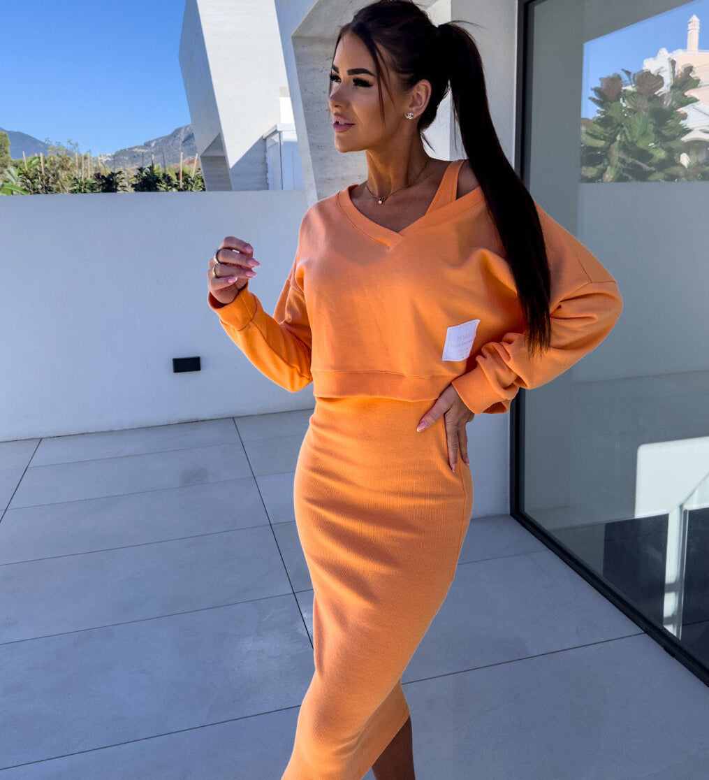 SONJA - Stilvolles, den Bauch bedeckendes Kleid mit V-Ausschnitt