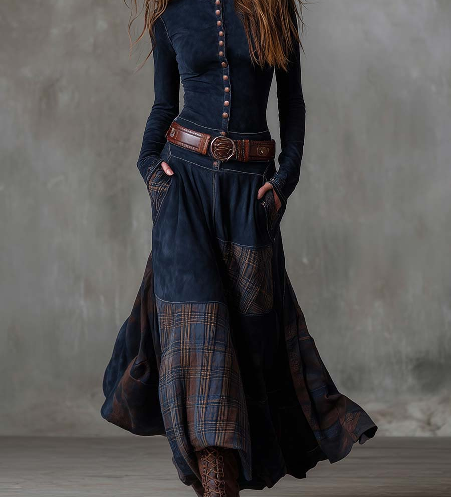 Helena - Maxikleid aus blauer Wildleder-Optik mit Gürtel