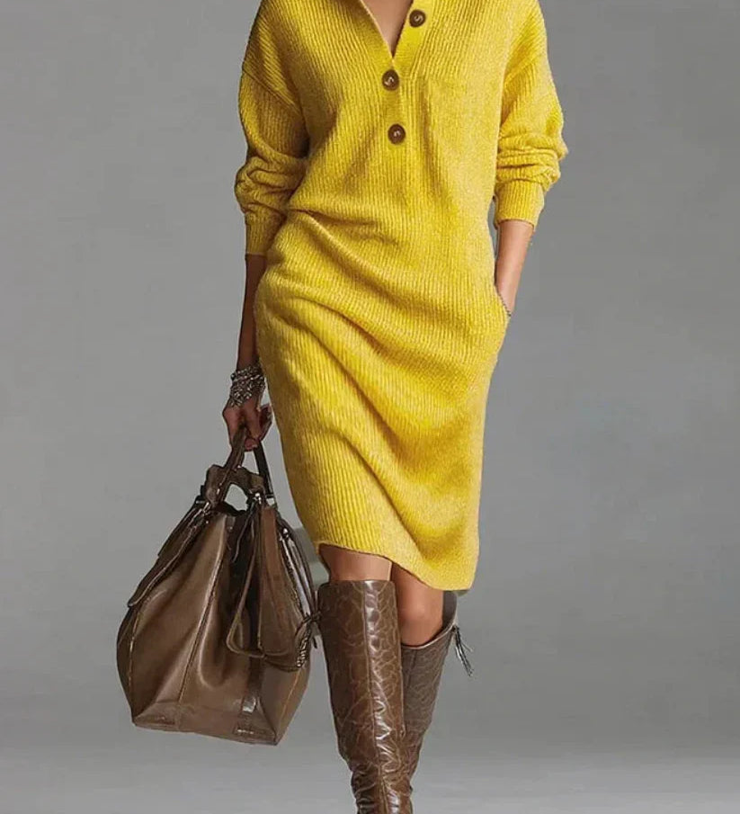 Lorena - Strickkleid mit Kragen und Knöpfen
