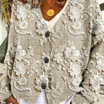 Der Cardigan mit Blütenfaden ist dein weicher Layer aus Textur und Charme – geschaffen für frische Morgen, kreative Nachmittage oder um deinem Look mit einem floralen Akzent zu bereichern. Er vereint gemütlichen Komfort und filigrane Details in einem leicht tragbaren Stück. Mit seiner zarten Stickerei auf der gesamten Oberfläche, Knöpfen in natürlichen Tönen und einer lässigen Passform bietet dieser Cardigan sowohl Struktur als auch Weichheit. Trage ihn über einem T-Shirt, einem Top oder einem Kleid – egal, ob du zu Hause bleibst oder ausgehst, vervollständige dein Outfit mit zeitloser Eleganz.