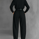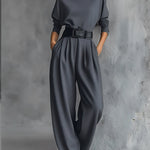 Trage das Set Maria mit einem langen Mantel und Lederstiefeln für einen eleganten Effekt oder kombiniere es mit weissen Sneakers, wenn du einen lässigen, aber dennoch stilvollen Look kreieren möchtest.